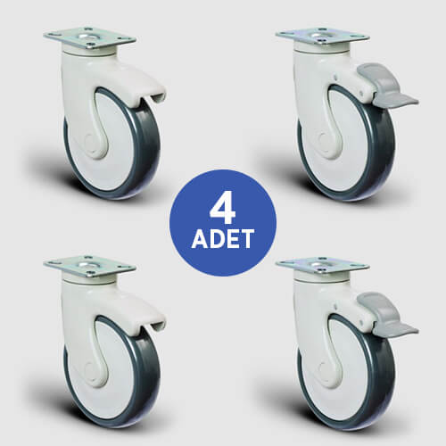 4lü set ürünümüzün içinde 2 adet oynak ve 2 adet oynak frenli tekerlek mevcuttur. Genellikle 4 tekerlekli bir uygulamada 2 tekerleğin frenli (kilitli) olması yeterlidir. 4lü set paketimiz sayesinde hem ürünümüzü daha uygun fiyatlı olarak alabilir hem de 1 ekipmana takılmak üzere set ürünümüzü almış olursunuz.
