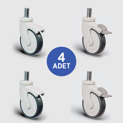 4lü set ürünümüzün içinde 2 adet oynak ve 2 adet oynak frenli tekerlek mevcuttur. Genellikle 4 tekerlekli bir uygulamada 2 tekerleğin frenli (kilitli) olması yeterlidir. 4lü set paketimiz sayesinde hem ürünümüzü daha uygun fiyatlı olarak alabilir hem de 1 ekipmana takılmak üzere set ürünümüzü almış olursunuz.