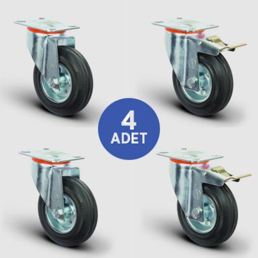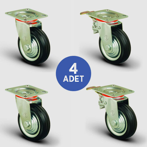 4lü set ürünümüzün içinde 2 adet oynak ve 2 adet oynak frenli tekerlek mevcuttur. Genellikle 4 tekerlekli bir uygulamada 2 tekerleğin frenli (kilitli) olması yeterlidir. 4lü set paketimiz sayesinde hem ürünümüzü daha uygun fiyatlı olarak alabilir hem de 1 ekipmana takılmak üzere set ürünümüzü almış olursunuz.