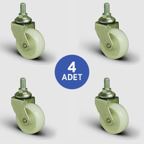 EB05 ZKZ 50 civata bağlantılı, poliamid tekerlekli ürünümüzdür. Tekerleğin yataklaması burç ile sağlanmıştır. Tekerlek, civata ve somun aracılığıyla oynak tabladaki 4 deliğe bağlantı yapılarak yüzeye montaj gerçekleştirilir. Tekerlek cıvata ölçüsü İNÇ cinsinden olup cıvata çapı 3/8'' inçtir. Kalınlığı yaklaşık 9,52 mmdir. Metrik cinisi cıvatalardan farkı diş aralığıdır. Bu sebeple cıvatalı tekerlek seçerken cıvata çapının inç cinsi olması göz önünde bulundurulmalıdır. Tekerlek, oynak maşası sayesinde 360 derece dönebilme kabiliyetine sahiptir. Tablalı bağlantı en çok tercih edilen bağlantı tipidir.4lü set paketimiz sayesinde hem ürünümüzü daha uygun fiyatlı olarak alabilir hem de 1 mobilyaya takılmak üzere set ürünümüzü almış olursunuz.