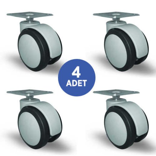 EC01 MKT 75 geniş tip, çift kasnaklı, döner tablalı, polipropilen (moblen), termoplastik kauçuk kaplı, gri renkli tekerlekli ürünümüzdür. Tekerleğin yataklaması burç ile sağlanmıştır. Tekerlek, civata ve somun aracılığıyla oynak tabladaki 4 deliğe bağlantı yapılarak yüzeye montaj gerçekleştirilir. Tekerlek, oynak maşası sayesinde 360 derece dönebilme kabiliyetine sahiptir. Tablalı bağlantı en çok tercih edilen bağlantı tipidir.