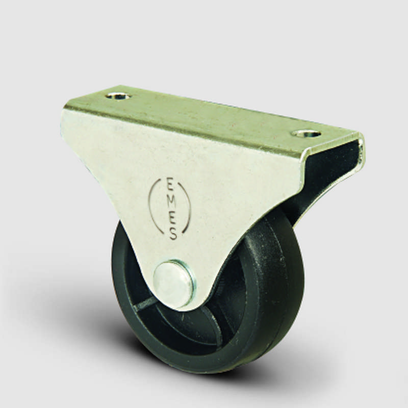 Siyah plastik malzemeden üretilmiş olan tekerlek oldukça ekonomik bir çözümdür. Tekerleğin aşınma direnci düşüktür. Bu sebeple ağır yükler için tercih edilmez. Daha ağır yükler için poliamid tekerlek kullanımı daha uygun olacaktır. Mobilya tekerleği olarak en çok tercih edilen ürünlerimiz arasındadır.