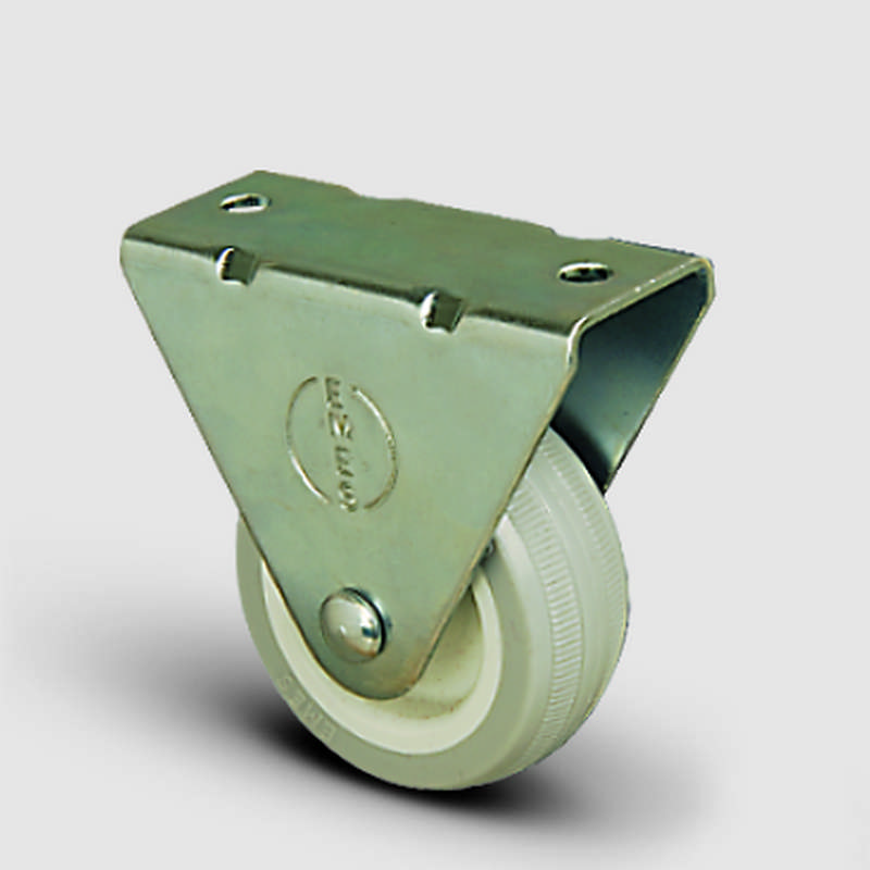 EP02 ZKC 50 kodlu ürünümüz sabit maşalı, poliamid kasnaklı ve PVC kaplamalı tekerleğimizdir. Tekerleğin yataklaması burç ile sağlanmıştır. Tekerlek, civata ve somun aracılığıyla sabit tablaya bağlantı yapılarak yüzeye montaj gerçekleştirilir. Tablalı bağlantı en çok tercih edilen bağlantı tipidir.