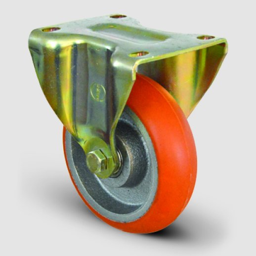 Eİ02 VBPB 125 kodlu ürünümüz sabit maşalı, döküm kasnaklı ve poliüretan kaplamalı tekerleğimizdir. Tekerleğin yataklaması bilyalı rulman ile sağlanmıştır. Tekerlek göbeğinde 2 adet bilyalı rulman mevcuttur. Ağır yükler için tavsiye edilen rulmanlı yataklama; darbelere karşı dayanıklı, kolay ve sessiz hareket etme kabiliyetine sahiptir. En ideal yataklama tipi olup uzun ömürlüdür ve bakım gerektirmez.