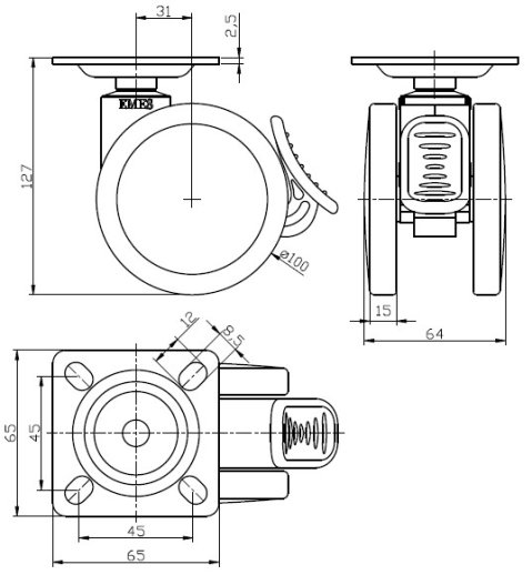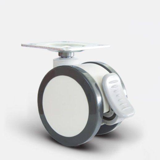 | EQ01 ZBP 100F döner tablalı, plastik maşalı, poliamid üzeri poliüretan kaplı çift kasnaklı medikal tekerleğimizdir. Tekerleğin yataklaması bilyalı rulman ile sağlanmıştır. Aşınmaya karşı dirençli, gürültüsüz çalışan, iz bırakmayan, düşük yuvarlanma ve dönme direnci olan bir tekerlektir. Rulmanlı yataklama sayesinde darbelere karşı dayanıklı, kolay ve sessiz hareket etme kabiliyetine sahiptir. Tekerlek, civata ve somun aracılığıyla oynak tabladaki 4 deliğe bağlantı yapılarak yüzeye montaj gerçekleştirilir. Tekerlek, oynak maşası sayesinde 360 derece dönebilme kabiliyetine sahiptir. Kilit mekanizması aktive edildiğinde hem tekerleğin hem de oynak maşanın hareketini engelleyip kilitlenmesini sağlar. Bu sayede sistem güvenli şekilde hareketsiz kalır. Genellikle 4 tekerlekli bir uygulamada 2 tekerleğin frenli (kilitli) olması yeterlidir.Tablalı bağlantı en çok tercih edilen bağlantı tipidir. Poliüretan kaplama sayesinde ürün sessiz bir sürüş sağlar. Aynı zamanda bu kaplama sayesinde estetik bir görüntü oluşur. Kullanıldığı zemine zarar vermeden çalışır, iz bırakmaz. Plastik maşa sayesinde hijyen sağlanır ve üründe kullanan metal parçalar minimuma indirgenmiş olur. Özellikle hastane karyola yatak ve medikal ekipman tekerleği olarak tercih edilen bu ürünümüz aynı zamana mobilya, mağaza ekipmanı ve temizlik ekipmanı tekerleği olarak da kulanılabilir. |