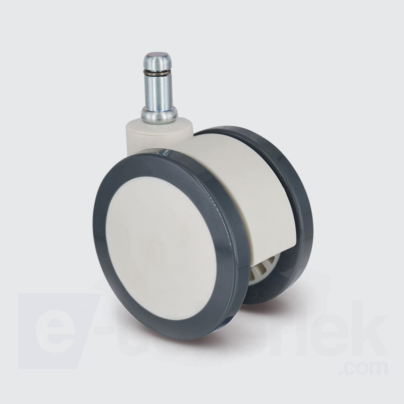 EQ03 ZKP 75 sarhoş segmanlı pim bağlantılı, plastik maşalı, poliamid üzeri poliüretan kaplı çift kasnaklı medikal tekerleğimizdir. Pim ölçüsü 11mm 'dir. Pim uzunluğu 25,8mm’dir. Tekerleğin yataklaması kendinden burç ile sağlanmıştır. Aşınmaya karşı dirençli, gürültüsüz çalışan, iz bırakmayan, düşük yuvarlanma ve dönme direnci olan bir tekerlektir.