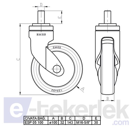 Plastik gövdeli maşa, döner başlık, perçinli teker aksı