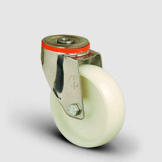 SSEM04ZKZ80 Paslanmaz Delik Bağlantılı Poliamid Tekerlek Çap:80 Inox Hafif Sanayi Tekerleği Burçlu Oynak Delik Bağlantılı