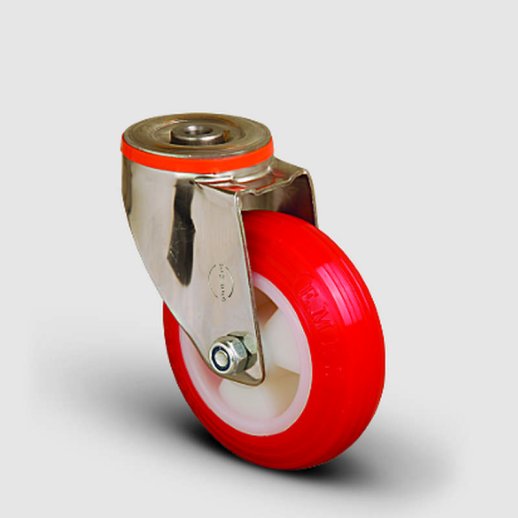 SSEM04ZKP100 Paslanmaz Delik Bağlantılı Poliüretan Tekerlek Çap:100 Inox Hafif Sanayi Tekerleği Burçlu Oynak Delik Bağlantılı Poliamid Üzeri Poliüretan Kaplı