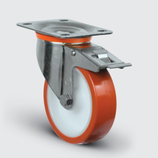 Preslenmiş çelik sac, sarı çinko kaplama, çift bilya yataklı, plastik toz koruma, cıvata ve somonlu teker aksı