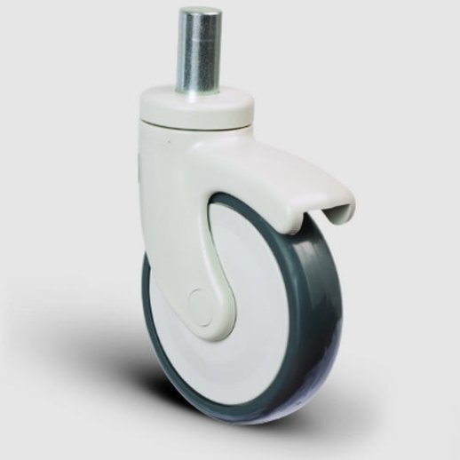 Termoplastik kauçuk kaplama sayesinde ürün sessiz bir sürüş sağlar. Aynı zamanda bu kaplama sayesinde estetik bir görüntü oluşur. Kullanıldığı zemine zarar vermeden çalışır, iz bırakmaz. Plastik maşa sayesinde hijyen sağlanır ve üründe kullanan metal parçalar minimuma indirgenmiş olur. Özellikle hastane karyola yatak ve medikal ekipman tekerleği olarak tercih edilen bu ürünümüz aynı zamana mobilya, mağaza ekipmanı ve temizlik ekipmanı tekerleği olarak da kulanılabilir.